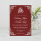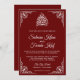 Éblouissez vos invités avec ce faire-part de mariage à thème arabe avec une élégante bordure blanche ornée et "Bismillah" en calligraphie arabe contre un arrière - plan rouge foncé. Ajoutez simplement les détails de votre événement sur ce modèle facile à utiliser pour en faire une invitation unique. Cette carte est entièrement personnalisable. Tous les textes sont modifiables et la couleur arrière - plan peut être facilement changée selon ce qui vous convient le mieux.