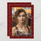 Elegant graduation photo announcement with a mathematics background in white and maroon school colors. Perfect for math lovers or those pursuing or graduation from a technical career. Illustrated and designed by Patricia Alvarez.
