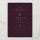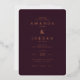 This elegant wedding invitation features a deep maroon background with off-white text, creating a sophisticated and formal atmosphere. The layout is centred and balanced, with a clean design that emphasizes the main names in large, uppercase serif font. The minimalistic colour palette and classic typography convey a timeless look, perfect for a significant life event. Ideal for couples seeking an understated yet refined aesthetic, this invitation sets the tone for a memorable celebration.