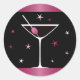 Elegant martini cocktail drink glass fuchsia black classic round sticker