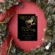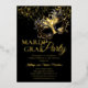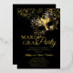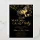 Elegant black and gold foil and gold-tone masquerade mask and confetti, "Mardi Gras Party" design.