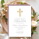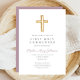 Elegant Mauve Cross Religious Girl First Communion Invitation
