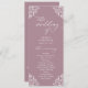 Ces élégants programmes de mariage mauve disposent d'un cadre décoratif orné avec une calligraphie moderne. Ce mauve est d'une couleur violet muet rose ou rose poussiéreux. Ces programmes de mariage à thé sont plats avec un avant et un arrière. Votre mariage et message de remerciement sont à l'arrière. Afficher les pièces correspondantes dans cette collection de mariages mauves.
