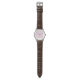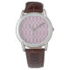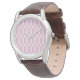 NewParkLane - Custom Classic Brown Leather Watch, with an elegant, modern wave pattern in mauve / taupe and white.