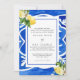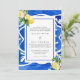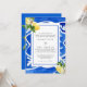 Watercolor Lemons. Mediterranean tile. Wedding Invitation. Floral Mediterranean floral element on the back. Blue Frame.