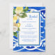 Watercolor Tropical Floral & Lemons. Mediterranean tile. Bridal Shower. Floral Mediterranean floral element on the back. Cobalt Blue.
