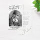 This beautiful memorial prayer card is a perfect way to honour the memory of your loved one. Featuring a classic black and white photo, elegant calligraphy, and a touching poem, this card is a thoughtful and timeless keepsake for family and friends. Easily personalize the card with your own details and photo.