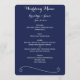 Elégant menu bleu marine mariage avec texte blanc changeant et graphiques décoratifs