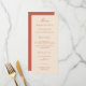 Élégant menu Mariage de script en terre cuite, s'il vous plaît personnaliser comme requis en utilisant le modèle de personnalisation en ligne avant de commander. Une fois que vous avez entré votre libellé sur le modèle de personnalisation, si vous trouvez que vous devez ajuster le positionnement du texte, alors utilisez l'option "Customiser plus loin" pour "Modifier à l'aide de l'outil de conception" (le bouton est disponible en défilant dans le modèle de personnalisation). Cette belle carte de menu présente une jolie couleur inspirée de la saison automnale. L'avant de la carte de menu affiche un élégant texte en terre cuite sur un joli arrière - plan de couleur beige paille, tandis que l'arrière est en terre cuite simple et sobre.