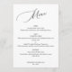Élégant menu minimaliste Mariage