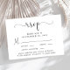 Carte RSVP mariage élégante avec "rsvp" dans un script de calligraphie chic avec des swashes, une typographie moderne simple, votre menu personnalisé options d'entrée et vos noms réunis par un coeur sur le dos.