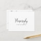 Cette carte postale rsvp, un élégant menu de script, est parfaite pour un mariage rustique. Le design sobre et élégant présente une typographie de script classique et sophistiquée en noir.