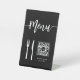 Elegant Menu Script Knife & Fork QR Code Black Pedestal Sign