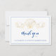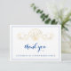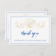 Cet élégant design côtier présente un coquillage doré élégant et des vagues avec une bordure bleue, personnalisées avec vos noms. Le côté inverse comporte votre message personnel personnalisé. Parfait pour les mariages de plage, d'été ou de sports nautiques. Design©Rosalind Moore, Cherry Lane Designs.