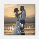 elegant merrily ever after, wedding photo holiday magnet ,white calligraphy.