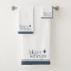 This elegant bath towel set makes a wonderful Christmas gift for any family member who loves celebrating the holidays. Modern typography reads MERRY & BRIGHT in dusty blue tones.