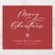 Festive Merry Christmas script lettering, holiday bottle labels. Design features, snowflake accent and whimsical white holiday typography quote on red background. Two template text lines for your message and name.