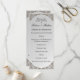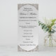 A beautiful, metallic-look silver wedding program featuring a very decorative faux-metal lacework frame at the top and bottom. All details on both sides of the card can be easily customized at the Personalize the Template link above.