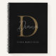 Elegant Midnight Black Mossy Gold Script Monogram Notebook