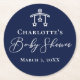 Elegant Midnight Blue Baby Shower Personalized Round Paper Coaster