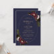 Elegant Midnight Blue Burgundy Floral Wedding Invitation