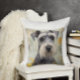 An illustration of a Miniature Schnauzer decorates these pretty throw pillows.
