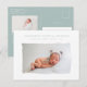 Elegant minimal blue birth announcement photo postcard. Stylish minimal design, colours can be changed.