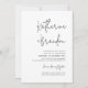 An elegant yet modern wedding invitation in black and white minimalist theme. It features a combination of calligraphy casual script lettering and a modern serif font with a customized picture of the couple at the back.