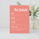 Elegant Minimal Coral Pink Script Wedding Details Enclosure Card. Customize with RSVP, wedding website, location, and accommodations info for your guests. Please message the designer if you need help making any changes.