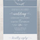 Elegant Minimal Floral Dusty Blue Monogram Wedding All In One Invitation