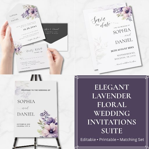 Make a lasting first impression with this elegant minimal gatefold wedding invitation, designed for modern and evening weddings. Featuring soft lavender florals, a refined white layout, and a beautifully coordinated inside RSVP section, this invitation offers both style and functionality. The gatefold format adds a luxurious touch, while clean typography and delicate floral details create a timeless western aesthetic. Fully editable text allows easy personalization of names, dates, and wedding details. Perfect for classic, garden, evening, and contemporary weddings, this invitation is ideal for couples seeking a sophisticated and premium stationery suite.