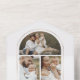 This sleek and elegant minimalist style design will showcase your cherished photo greeting, featuring a three-photo arch-shaped template with a thin gold gradient line border, "Merry Everything" customizable greeting and personalization text fields on a clean white background. The panels also feature additional editable text fields and a unique tearaway portrait template.
