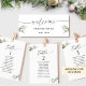 Elegant seating chart header with delicate Eucalyptus greenery details and modern handwritten calligraphy elements. Coordinating seating chart cards available. A double-sided card so guests can look from both, front and back for their names. Clear space all around giving you the liberty to use clips or punch holes for hanging displays.   Part of our "Minimal and Graceful Eucalyptus Wedding" collection with a variety of coordinating products available, including matching seating chart cards, table number cards, and menus.