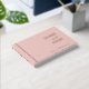 Elegant wedding guest book in a sleek, modern, and minimal design with smooth velvety blush pink hardcover and real foil details in the foil colour of your choice. Foil in gold, silver, or rose gold. Design with the ability to add any text you like on the front, spine/side, and back. If you prefer the back without any text, please leave their corresponding template text boxes blank.