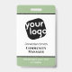 This elegant badge is perfect for any company looking to give their staff an individualized look with customized text and colours. The design features a sage green, black and white background that can easily be customized, as well!