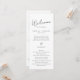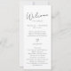 This modern, minimalistic wedding program features an elegant script front. It plays with the simplicity of a black and white typography design. It's the perfect choice for couples who appreciate clean and modern elegance. For any special design needs, feel free to get in touch with the designer directly by emailing choosehappystudio@yahoo.com