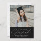 Simple graduation announcement featuring the graduate's photo at the top with "Graduate" displayed in a white modern calligraphy script below on a black background. Personalize the front of the photo graduation announcement by adding the graduation year, graduate's name, and school name. The card reverses to display a black and white diagonal stripe pattern. The 2023 graduation announcement is perfect for both high school and college graduates.