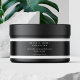 An elegant minimalist cosmetics jar label with a black background, white text, and a white border.