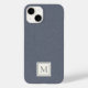 Elegant Minimalist Blue Grey Faux Linen Monogram Case-Mate iPhone Case