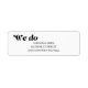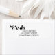 Introducing our modern and stylish "We do" wedding return address labels. The gorgeous bold black calligraphy and classic lettering on a white background is perfect for formal weddings. And, you can change the colours of the text and background to match your theme. Make a statement with our personalized return address labels. Order now and add a touch of elegance to your correspondence!