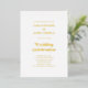 Introducing our modern and stylish foil wedding invitations. Make a statement with the gorgeous bold foil calligraphy and classic lettering on a crisp white background. Perfect for formal weddings, this design allows you to customize the colours of the foil and the background to perfectly match your theme. Make your special day even more memorable with these stunning wedding invitations. Order yours today and let's start planning the celebration of your dreams!