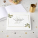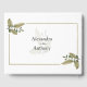 The design combines a refined typographical layout with subtle, soft-colored greenery to create a sophisticated and understated look. The lettering may feature an elegant script font to add a touch of romance. This is part of a complete set.