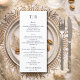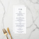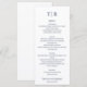 Elevate your wedding reception with the Elegant Minimalist Navy Blue Letters Wedding Menu. Featuring a crisp white background with refined navy blue text, this sophisticated design includes space at the top for the couple’s initials, followed by well-organized sections for appetizers, salads, entrées, and desserts. At the bottom, there is a customizable area for the couple’s names and wedding date. Perfect for modern, elegant, or classic weddings, this menu blends simplicity and timeless style, adding a polished touch to your table setting.
