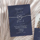 Experience timeless elegance with our minimalist navy blue wedding invitation. Featuring simple calligraphy script and a faux silver rope heart, this invitation exudes sophistication and charm. Set against a backdrop of rich navy blue, it sets the perfect tone for your special day. Invite your loved ones to celebrate with this sleek and stylish design, where every detail speaks volumes about the beauty of your love story.