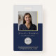 Elegant Minimalist Navy Gold Photo Logo QR code Badge