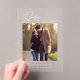 An elegant save the date photo clear acrylic announcement featuring a modern script font and simple minimalist design. THE SAMPLE PHOTO IS NOT INCLUDED. REPLACE WITH YOUR OWN PHOTO BEFORE ORDERING.