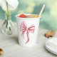 Beautiful paper cups with an illustration of a pink bow. Illustrated and designed by Patricia Alvarez.