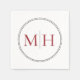 Elegant Minimalist Red Monogram Wedding Napkins. The dotted border is reminiscent of milgrain, which is a jewellery-detailing technique often used for engagement and wedding rings.