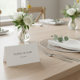 Add a touch of timeless elegance to your reception with this minimalist script wedding place card. Featuring modern calligraphy and clean typography, it perfectly complements any wedding theme or color palette. Personalize with your names, wedding date, and guest details for a sophisticated finishing touch to your table setting. Ideal for classic, modern, or romantic weddings.