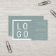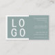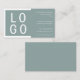 Elegant minimalist template of sage green. This modern and stylish custom design has space for you to add your own square shaped logo but also custom text for contact details for a professional design. The logo is on the left side, with a white backdrop, while the text is on the right, in a white colour font against a sage green colour.